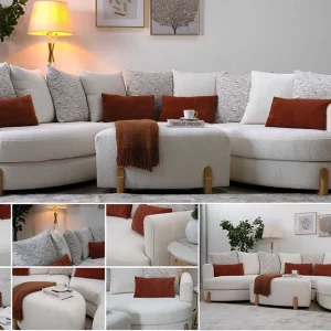 The white lotus sofa set is a contemporary and stylish furniture ensemble designed to